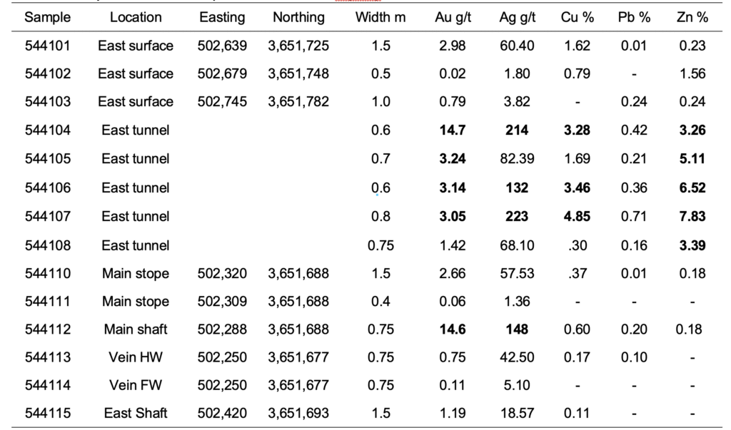 Dr. Gibson added: “We have also received the overlimit assays for silver for four samples from the Ripsey mine, which range from 132 to 224 g/t Ag. These results confirm the high-grade nature of the mineralization along the Ripsey vein, exposed at the surface and in underground workings over about 600 meters along strike.”