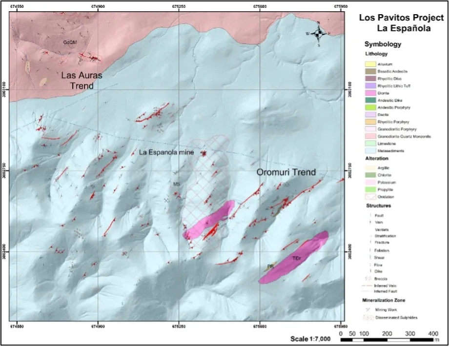 Figure 1. Geologic map of the Oromuri and La Espanola area of the Los Pavitos project.