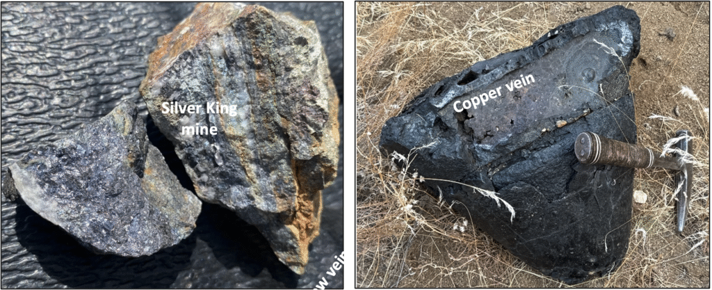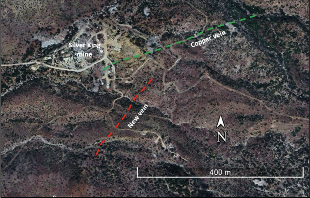 “During reconnaissance work, we have been working on understanding the controls of mineralization at the Silver King mine,” stated Dr. Craig Gibson, Chief Exploration Officer of the Company. “Two previously undescribed veins were discovered (Figure 1.), including one at a large mine dump about 300 meters south of the Silver King mine shaft. We believe this may have been the location of significant silver production. Several veins and prospect pits occur 300 meters along strike to the NE to a point near the Silver King glory hole. Of particular note, this is the first time we have observed mineralization similar to the Silver King deposit outside of the historic mine and so it provides an exciting new exploration target.”