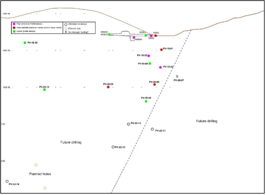 - 1,203 meters drilled to date in four holes; currently drilling the fifth hole of the current drilling campaign (PV-22-15).