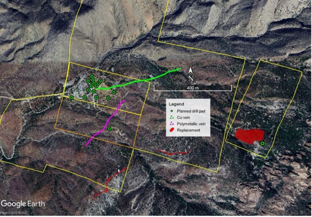 Following the recent discoveries, Prismo is planning to add second phase of drilling for an additional 1,000 meters. This additional program will focus on the newly identified targets outside of the historic mining area, such as the polymetallic vein and the copper vein mentioned above. Drilling of a large body of replacement mineralization on the patented Black Diamond claim is also being planned and is road accessible on private ground.